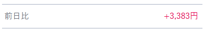 今日の前日比は、+3,383円 でした。
